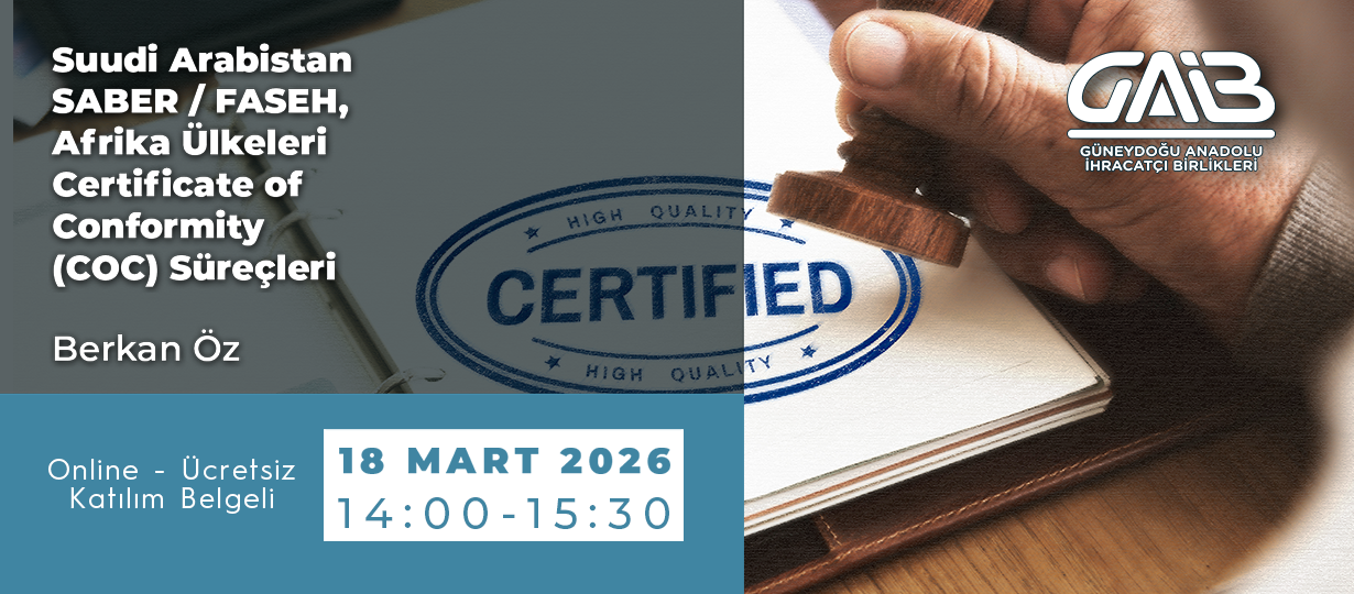 18Mart2026ÇarSuudi Arabistan SABER / FASEH, Afrika Ülkeleri Certificate of Conformity (COC) SüreçleriONLİNE