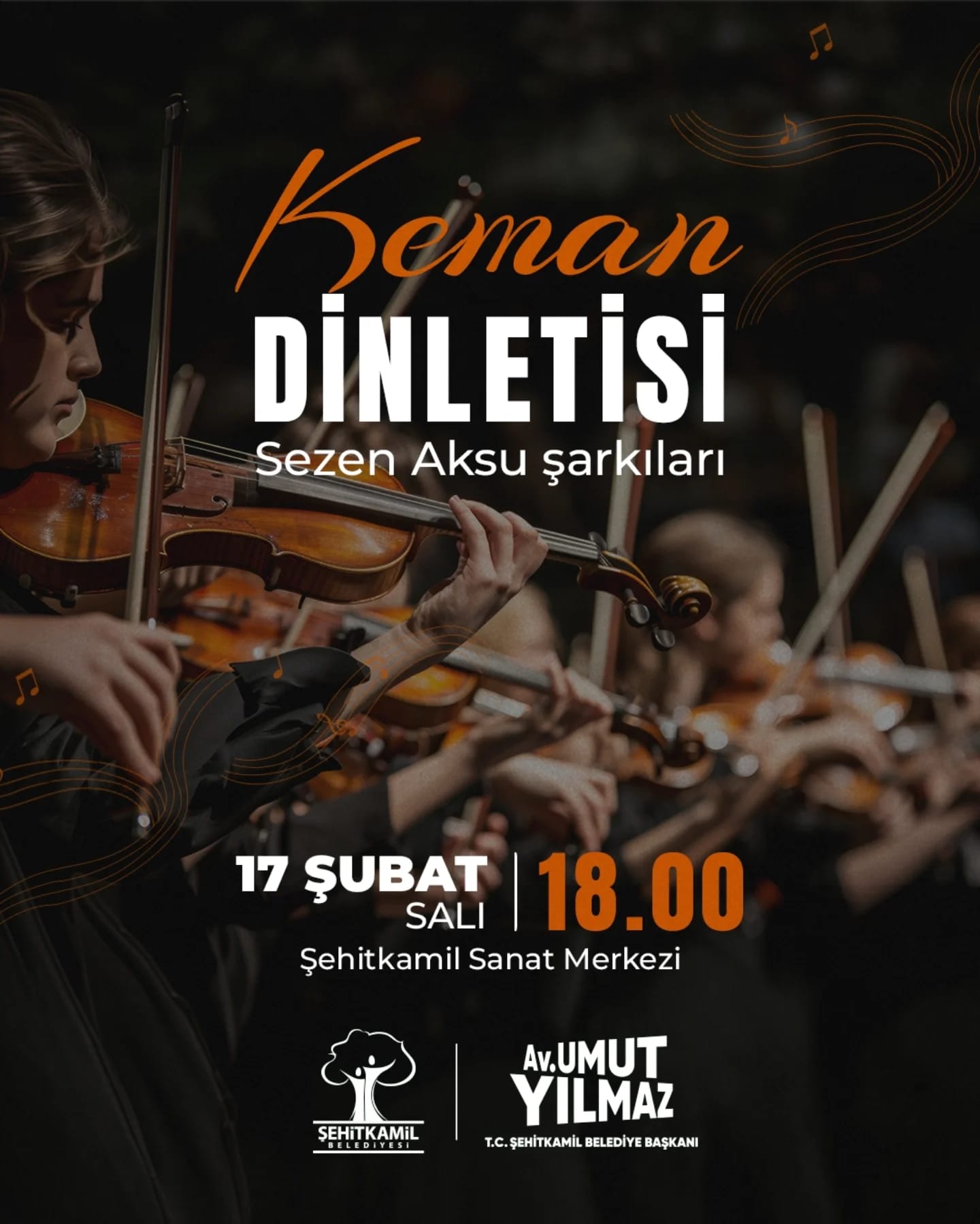 Şehitkamil Sanat Merkezi’nde düzenlenecek Keman Dinletisi’nde, müziğin en özel ezgilerini birlikte dinleyecek, aynı melodide buluşacağız.