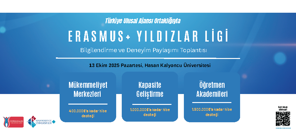 KatılHasan Kalyoncu Üniversitesi ev sahipliğinde ve Türkiye Ulusal Ajansı iş birliğiyle 13 Ekim 2025 Pazartesi günü önemli bir bilgilendirme ve deneyim paylaşımı toplantısı gerçekleştirilecektir. Toplantıda aşağıdaki Erasmus+ proje türleri tanıtılacak ve işbirliği fırsatları paylaşılacaktır: