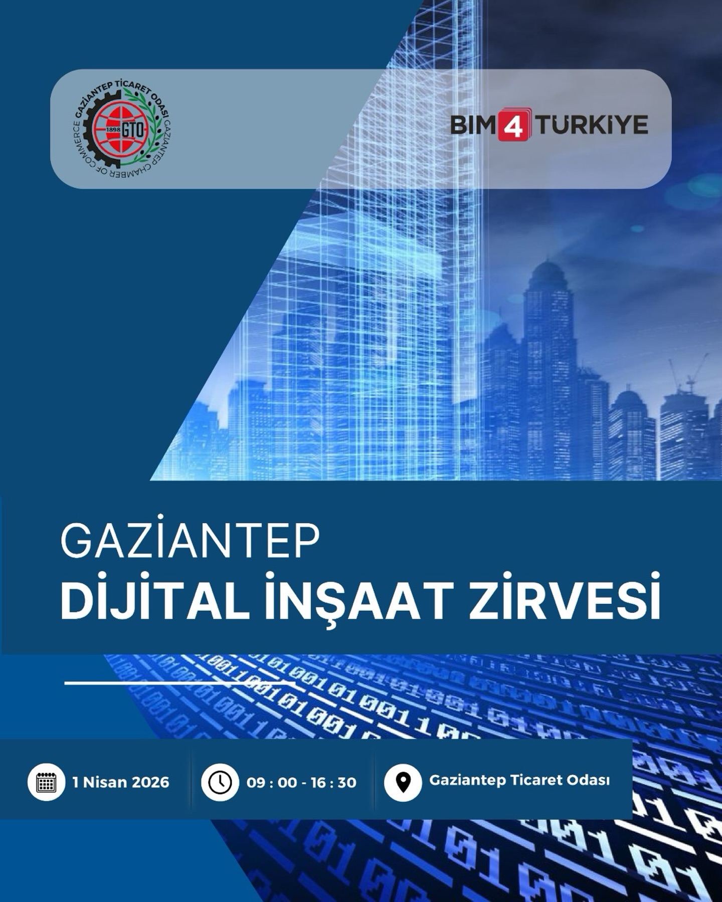 🏛️ Yapı Bilgi Modellemesi ve Yönetimi Derneği’ne bağlı BIM4TÜRKİYE platformu işbirliğiyle Ticaret Odası ev sahipliğinde düzenlenecek Gaziantep Dijital İnşaat Zirvesi, sektör profesyonellerini, akademisyenleri ve kamu temsilcilerini bir araya getirerek inşaat sektörünün dijital dönüşümünü masaya yatırıyor.