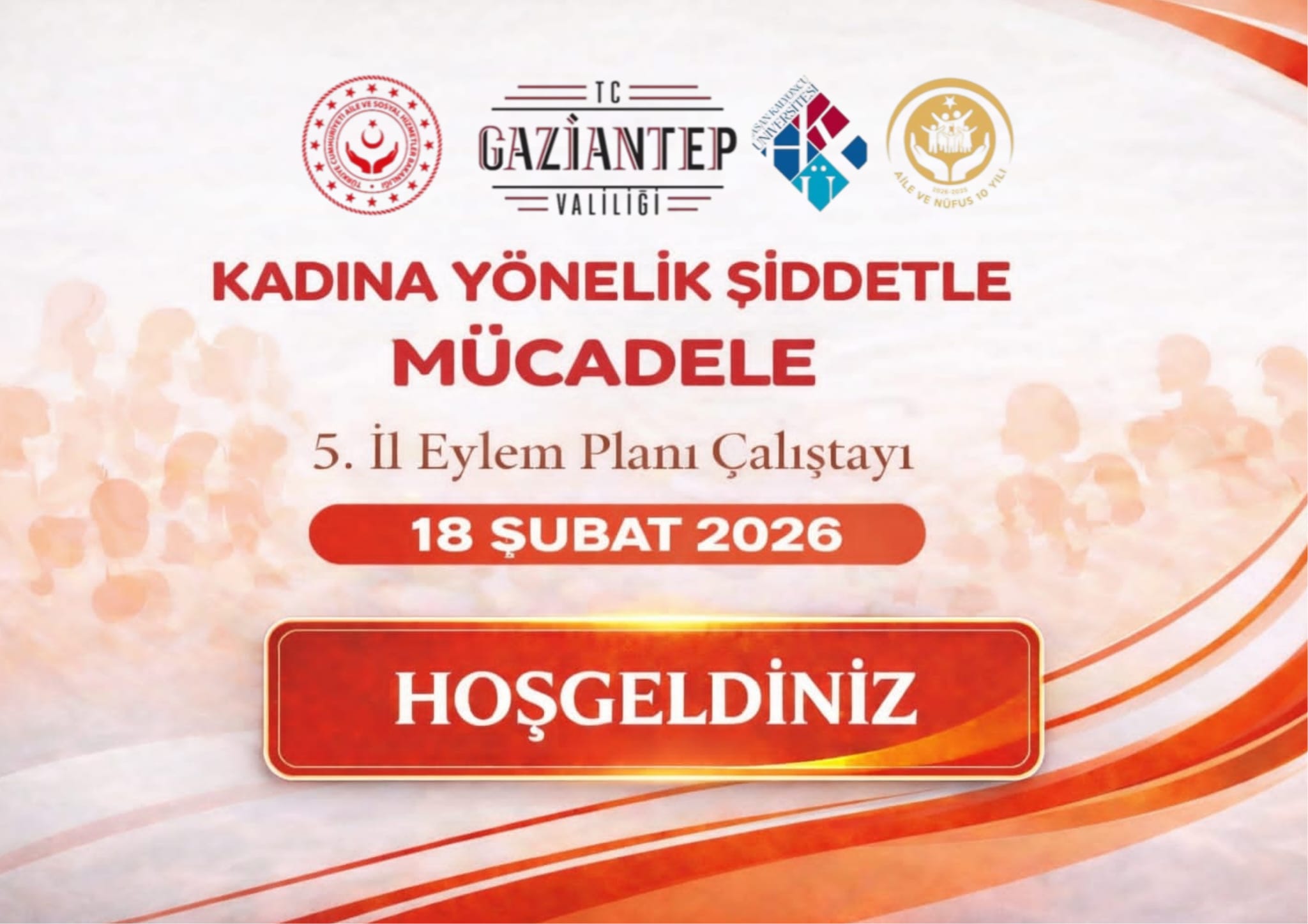 Aile ve Sosyal Hizmetler Bakanlığı koordinasyonunda ve ilgili bakanlıkların katılımıyla hazırlanan V. Ulusal Eylem Planı doğrultusunda, ilimizde yürütülecek çalışmaların planlanması, kurumlar arası iş birliği ve koordinasyonun güçlendirilmesi ile yerel ihtiyaç ve önceliklerin belirlenmesi amacıyla Gaziantep Kadına Yönelik Şiddetle Mücadele V. İl Eylem Planı Hazırlık Çalıştayı 18 Şubat 2026 tarihinde Gaziantep İstasyon’da düzenlenecektir.