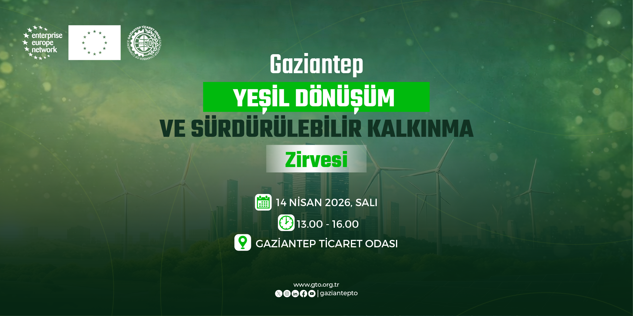 Gaziantep iş dünyasının yeşil dönüşüm yolculuğuna rehberlik etmek, sanayi ve üretimde karbonsuzlaşma sürecini doğru okumak ve işletmelerimizin rekabet gücünü sürdürülebilir şekilde artırmak amacıyla sizleri Gaziantep Yeşil Dönüşüm ve Sürdürülebilir Kalkınma Zirvesi’ne davet ediyoruz.