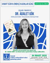 8 Mart Dünya Emekçi Kadınlar Günü Etkinlikleri kapsamında 14.00 – 16.00 saatleri arasında Uçak Hekimi Dr. Adalet GÖK’ ün sunumlarıyla "GÖKYÜZÜNDEN YERYÜZÜNE DENEYİMLER” konulu söyleşi düzenlenecek olup, sonrasında imza töreni düzenlenecektir.