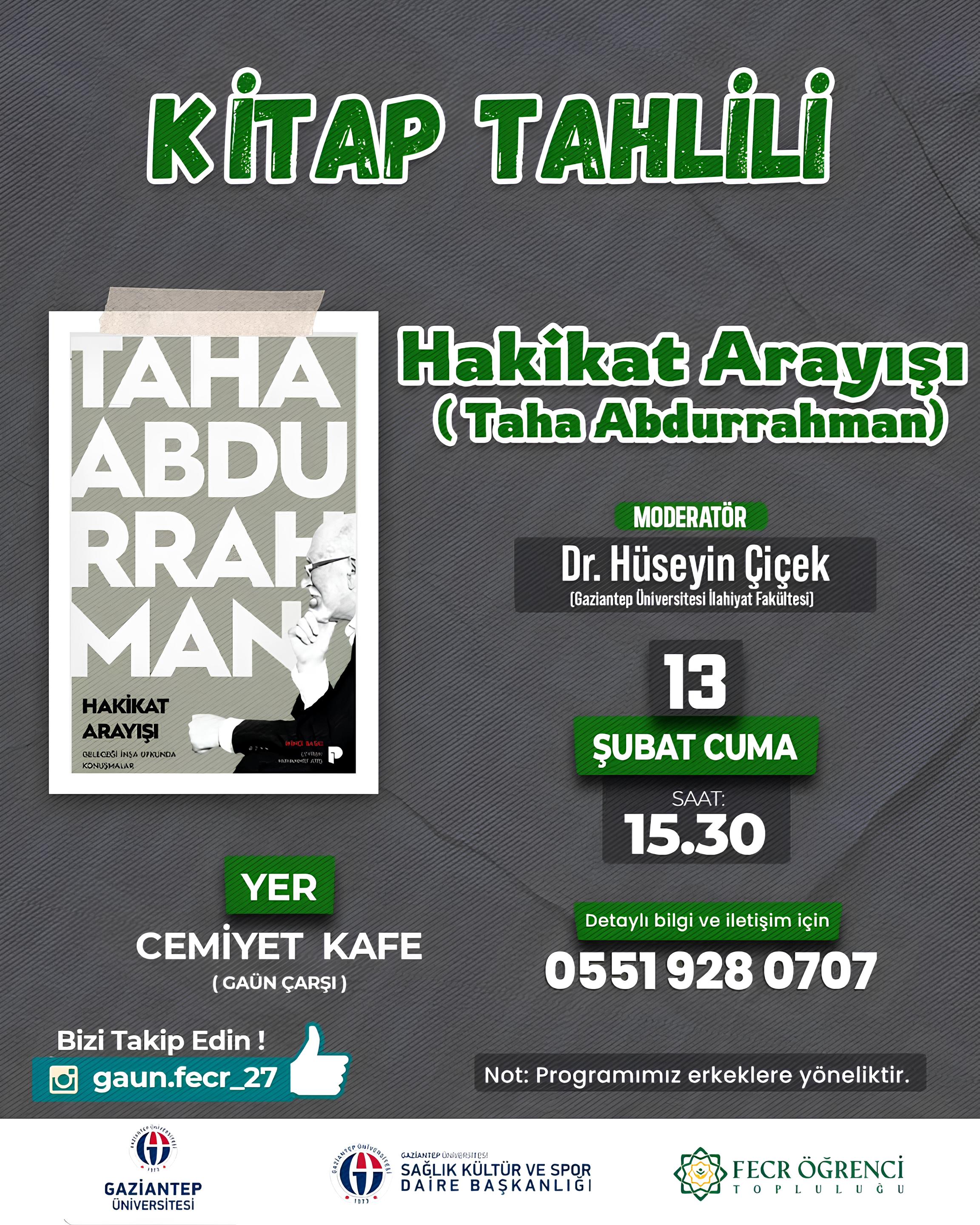 Fecr Öğrenci Topluluğu olarak Taha Abdurrahman'ın “Hakikat Arayışı” kitabının tahlilini gerçekleştiriyoruz.