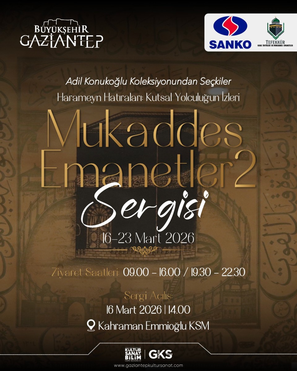 Mukaddes hatıraların izini süren "Mukaddes Emanetler 2" Sergisi, Ramazan'ın manevi atmosferinde Gaziantep'te ziyaretçileriyle buluşuyor.