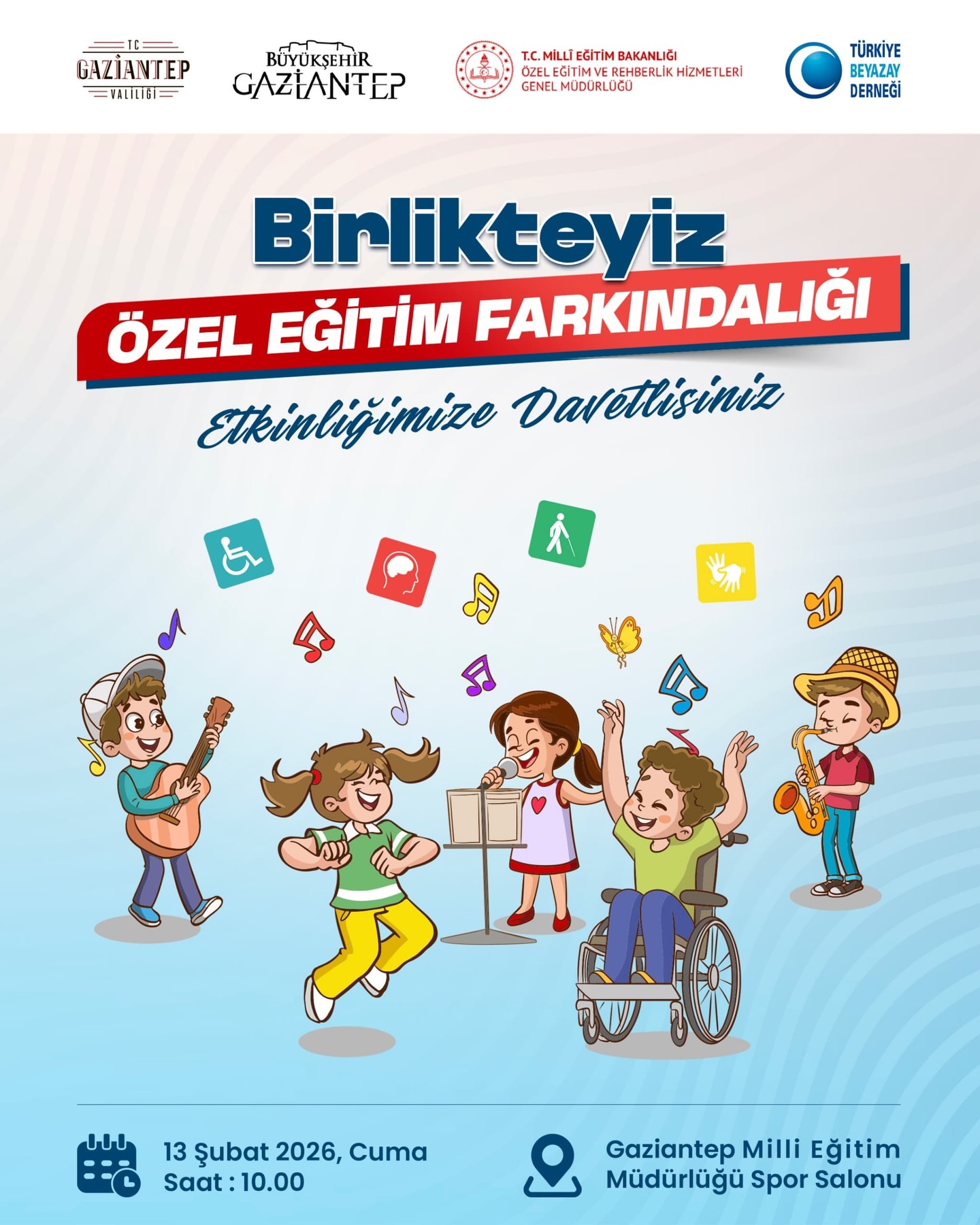 Gaziantep Valiliği, Gaziantep Büyükşehir Belediyesi ve Türkiye Beyazay Derneği iş birliğiyle düzenlenen “Özel Eğitim Farkındalığı Etkinliğimize” tüm halkımız davetlidir.