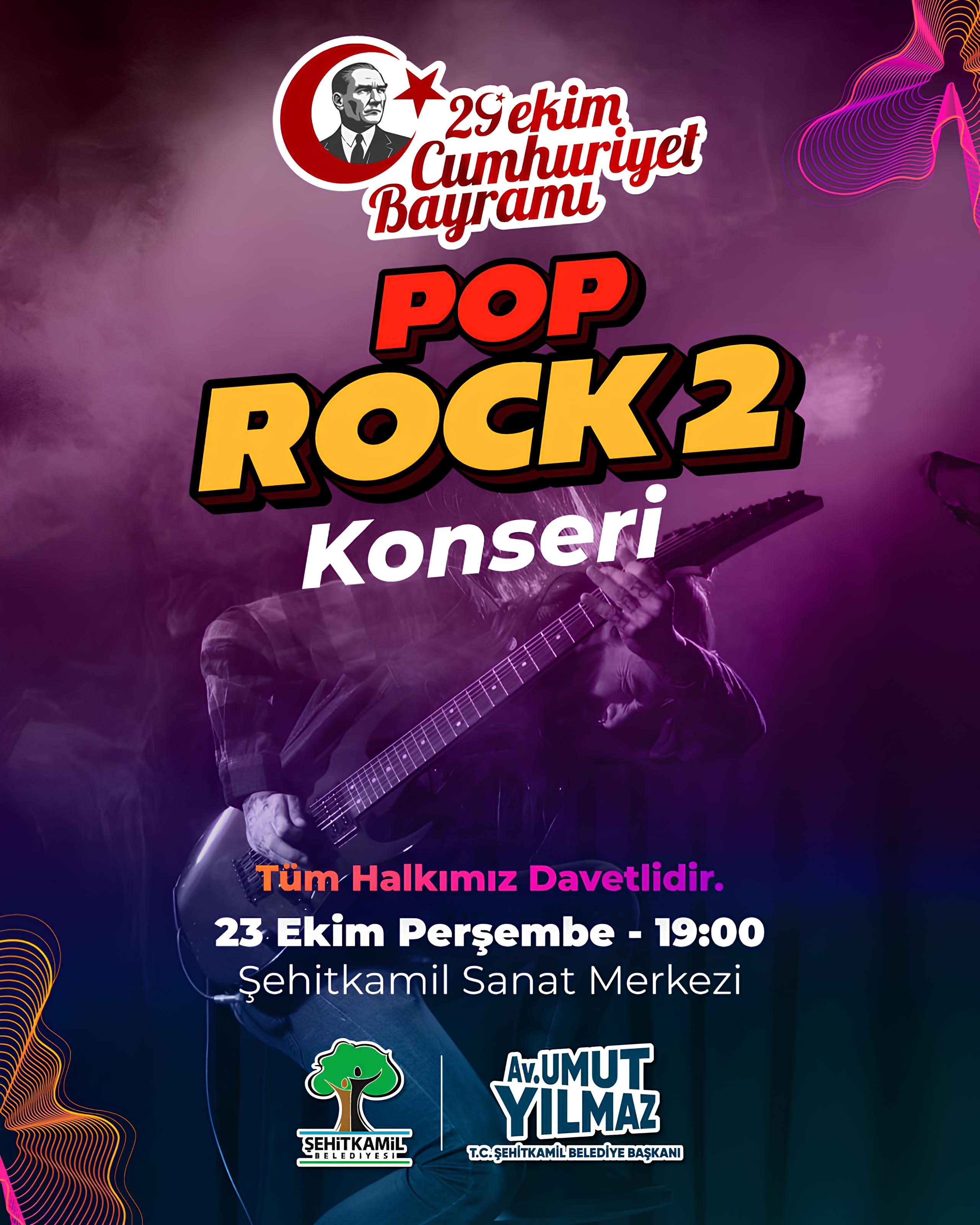 29 Ekim Cumhuriyet Bayramı etkinlikleri kapsamında düzenlenen Pop Rock 2 Konseri ile sahne, müzik ve coşku dolu bir akşama hazırlanıyor!