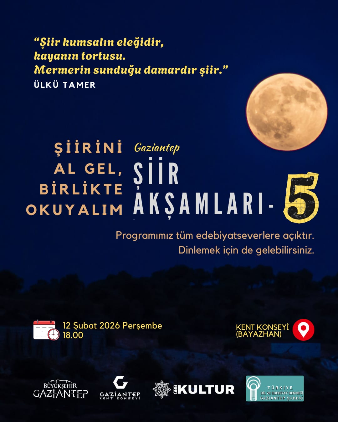 📖✨ Gaziantep’in edebiyat iklimini birlikte solumaya, şiirin sessiz ama derin yolculuğuna çıkmak üzere sizleri Şiir Akşamı etkinliğimize davet ediyoruz.