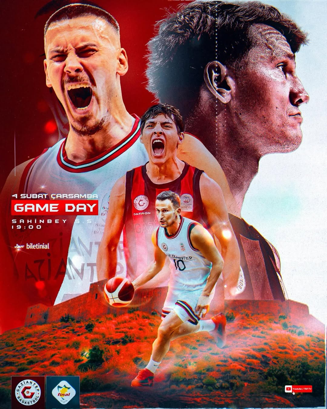 Türkiye Basketbol Ligi’nde heyecan 22. hafta mücadeleleriyle devam ediyor! Şehrimizin temsilcisi Gaziantep Basketbol, galibiyet parolasıyla Final Spor’u kendi evinde ağırlıyor. Bu dev mücadelede takımımızı yalnız bırakmamak için tüm Gaziantep halkı davetlidir.