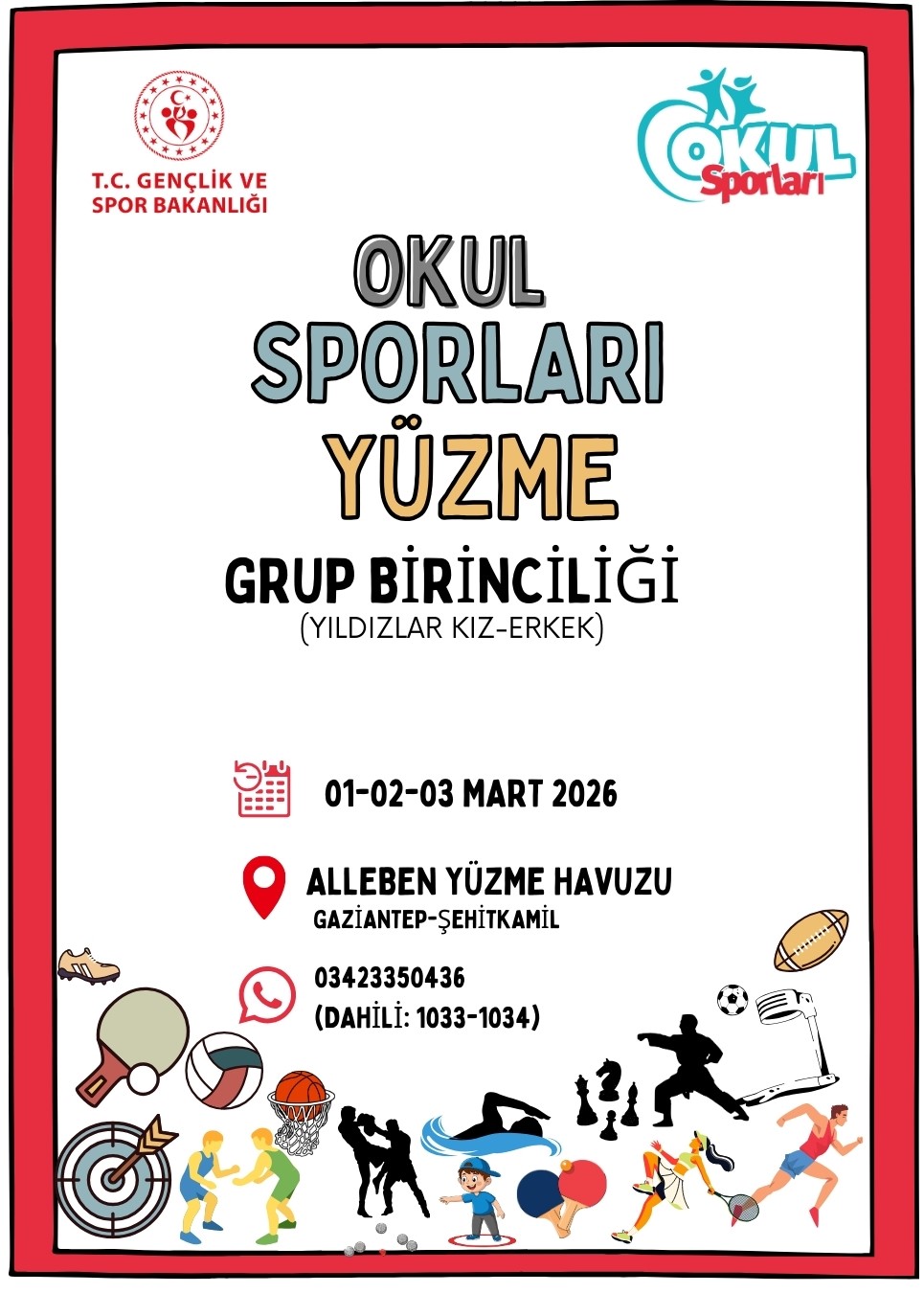 01Mart2026PazOkul Sporları Yüzme Yıldızlar Grup BirinciliğiALLEBEN YÜZME HAVUZU