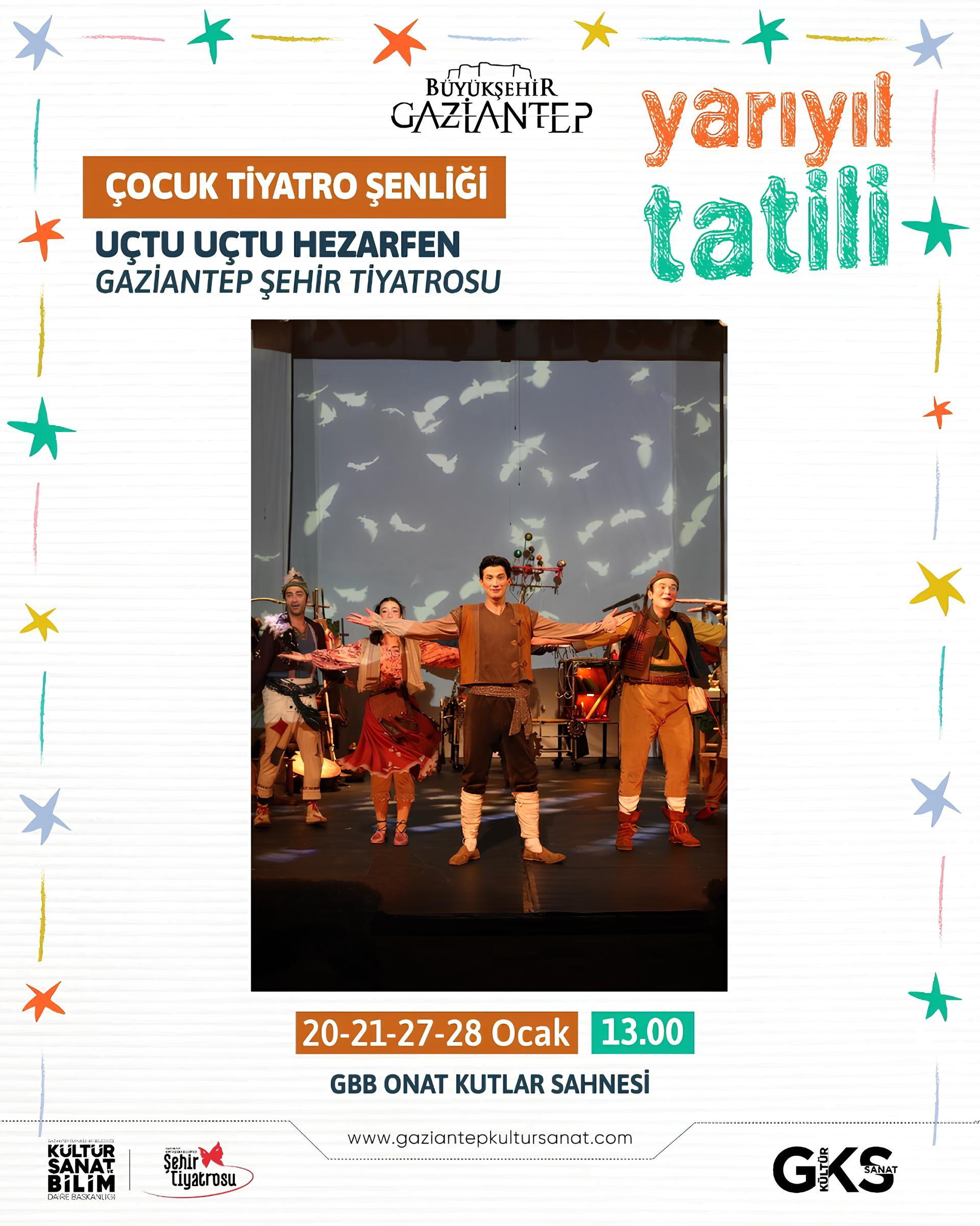 14Ocak2026ÇarÇocuk Tiyatroları Şenliği Başlıyor! Yarıyıl Tatilinde Minik Sanatseverler Için Perde Açılıyor!ONAT KUTLAR SAHNESİ GAZİANTEP (GAZİANTEP BÜYÜKŞEHİR BELEDİYESİ ŞEHİR TİYATROSU)